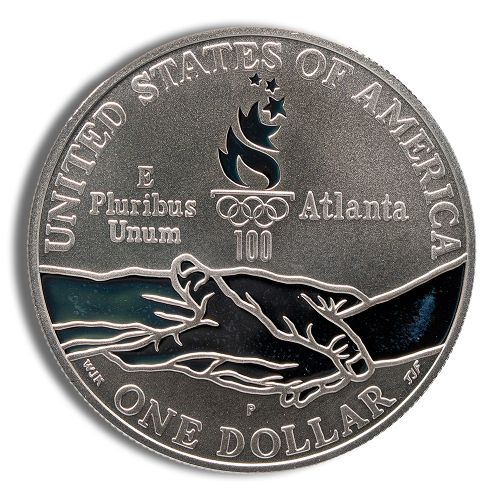 1995 d $1 olympic cycling silver commem bu1995-D $1 Olympic Cycling Silver Commem – BU