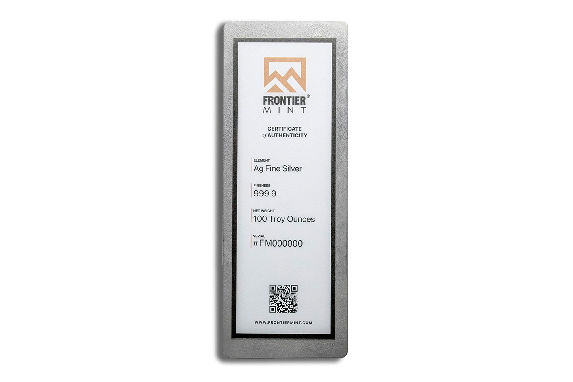 100 oz Silver Bar – Frontier Mint (Frosted)